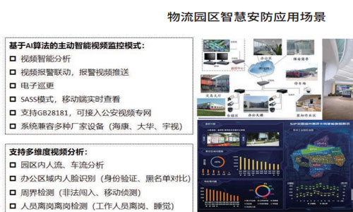 典型的園區智慧管理應用場景包括可視化的資產管理、能效管理、客戶資源管理、安全管理、車輛管理等。以物流園區的安全管理為例,目前基于AI算法的主動智能視頻監控模式可兼容多種廠家設備(海康、大華、宇視等),支持SaaS模式,實現多維度視頻智能分析、視頻報警聯動、報警視頻推送、電子巡更等功能。