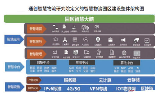 健壯的軀干。不同于傳統物流園區,智慧物流園區需要智慧基礎設施和智能建筑形態作為發展支撐。智慧基礎設施包括IPV6協議、5G網絡環境、智能電力系統、智能道路系統等。IPV6協議下一物一碼成為可能,5G網絡環境下海量數據實現高效傳輸,智能電力系統和智能道路系統使得“無人機”、“無人車”在園區大規模應用成為現實。園區建筑形態的智能化為園區物流業務運作的智能化、智慧化提供了基礎保障。