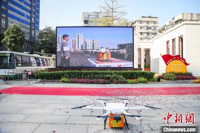 “緩緩起飛——上升到空中120米——平穩飛行——成功降落”,經過近18分鐘的飛行,載著政務、商務類郵件包裹的物流無人機,從廣州海珠區中國郵政南區郵政局大宗郵件處理中心出發,按照既定線路,準確降落在天河區中國郵政廣州智慧政務運營中心,標志著一線城市運郵跨入了無人機時代,也標志著粵港澳大灣區低空物流常態化商業運營取得重大突破。