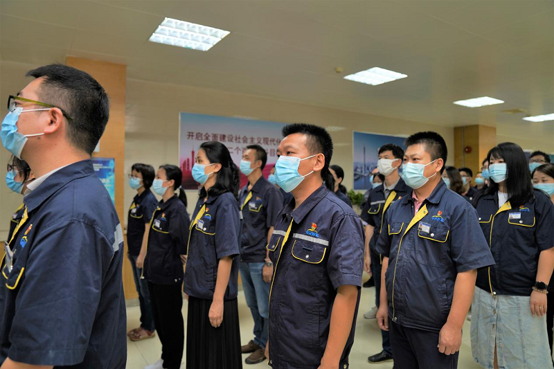 為迎接中國共產(chǎn)黨成立101周年的到來,激發(fā)公司全體職工建功新時代,奮進(jìn)新征程的干事創(chuàng)業(yè)熱情,以昂揚(yáng)姿態(tài)喜迎黨的二十大順利召開,2022年7月1日上午8點(diǎn)30分,廣日物流公司黨總支在公司總部開展了以“喜迎二十大 奮進(jìn)新征程”為主題的升旗儀式活動。公司黨政領(lǐng)導(dǎo)班子、黨支部書記、委員及部分黨員代表共計(jì)49人參與了觀看升旗儀式。