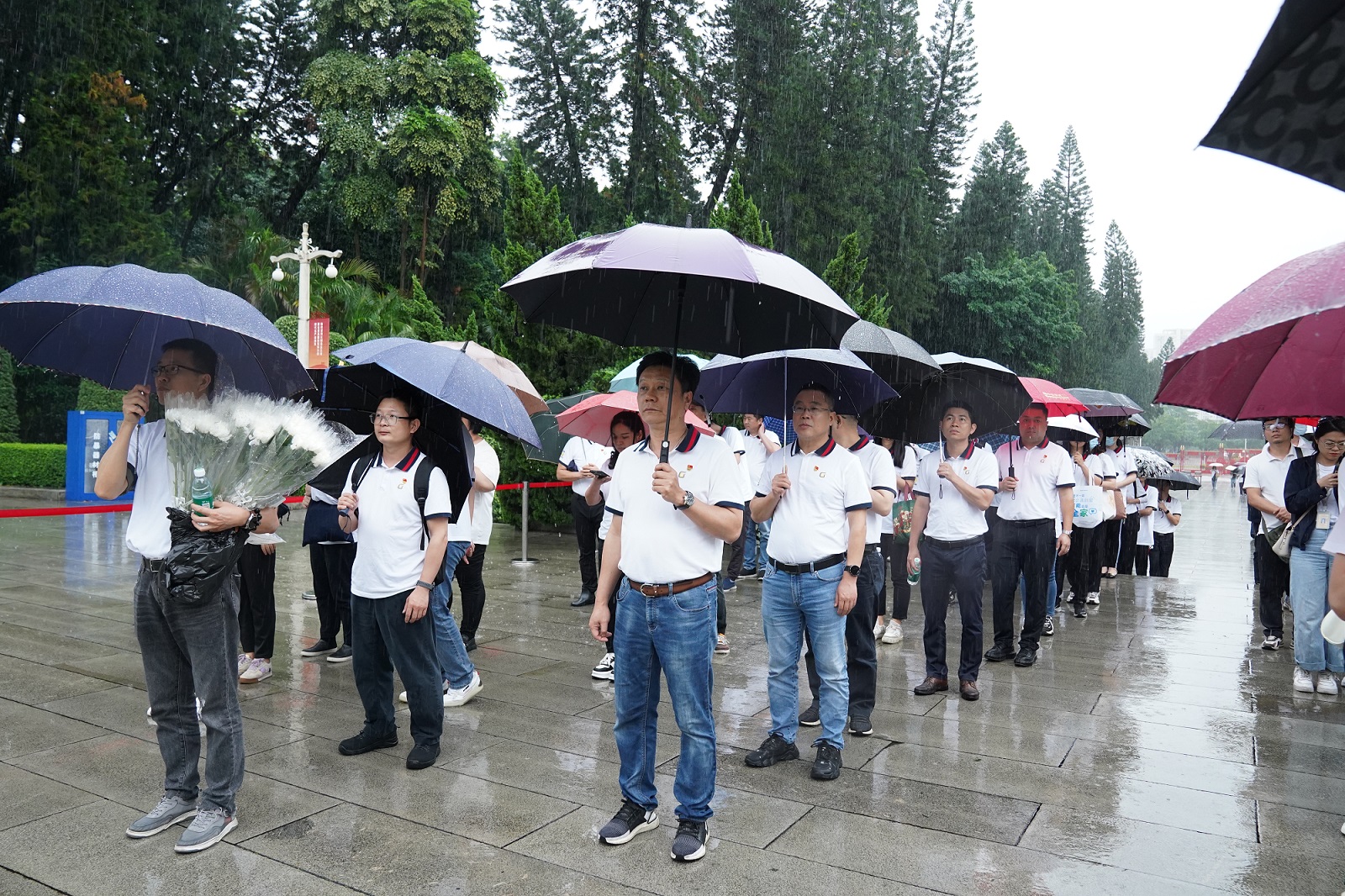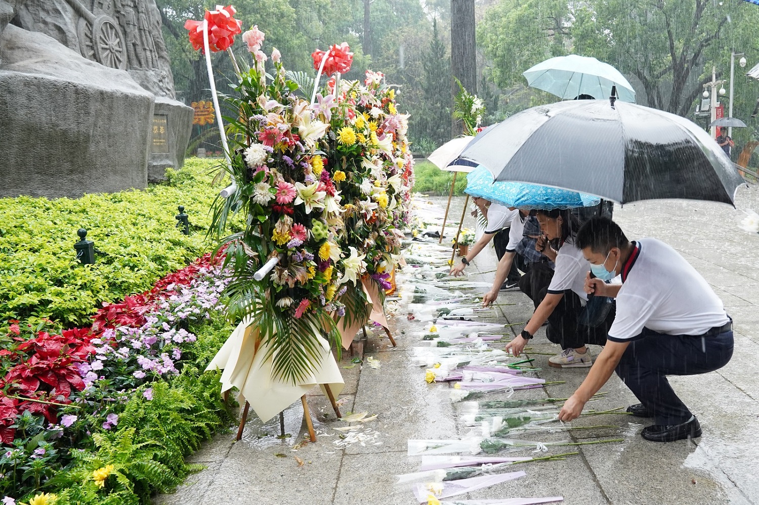 廣州總部黨總支組織廣州地區黨員干部前往廣州起義烈士陵園開展“緬懷革命先烈·凝聚奮進力量”主題黨日活動。在蒼松翠柏掩映下,雨中的烈士陵園顯得格外莊嚴肅穆。全體黨員干部迎著風、冒著雨在廣州起義紀念碑前整齊列隊、莊嚴肅立,隨后依次鞠躬敬獻鮮花,表達對革命先烈們的深切緬懷和崇高敬意。連綿的雨也不能阻擋前進的步伐,英烈精神將永遠被銘記和傳承。
